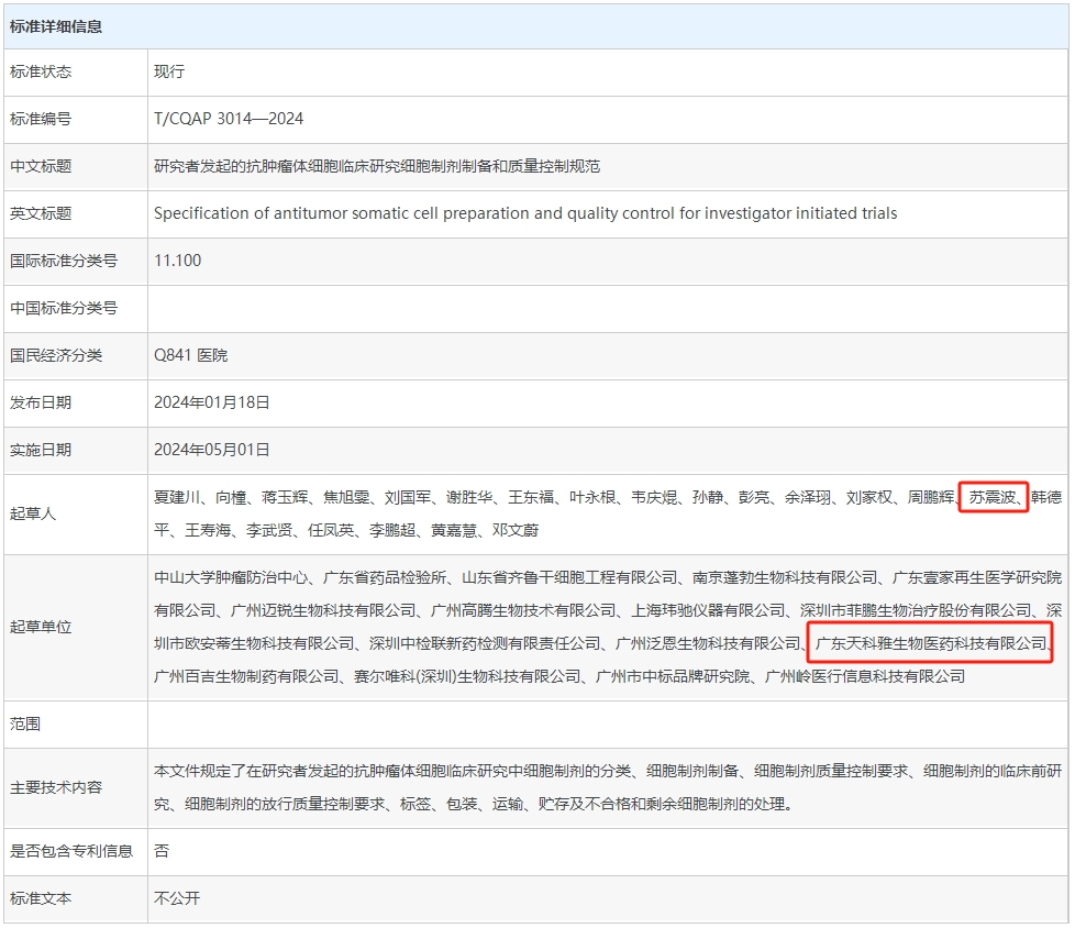 中山大學(xué)腫瘤防治中心主任導(dǎo)師兼中國(guó)醫(yī)藥質(zhì)量管理協(xié)會(huì)細(xì)胞治療質(zhì)量控制與研究專業(yè)委員會(huì)主任委員夏建川、實(shí)驗(yàn)研究部副研究員向橦、廣東省藥品檢驗(yàn)所一級(jí)主任科員蔣玉輝、廣東天科雅生物醫(yī)藥科技有限公司等參與起草,助力推動(dòng)中國(guó)抗腫瘤體細(xì)胞臨床研究。